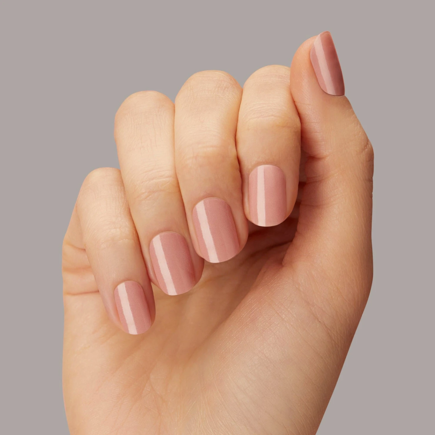 Semi-cured cool nude pink gel nail strips with mega volume & maximum shine.