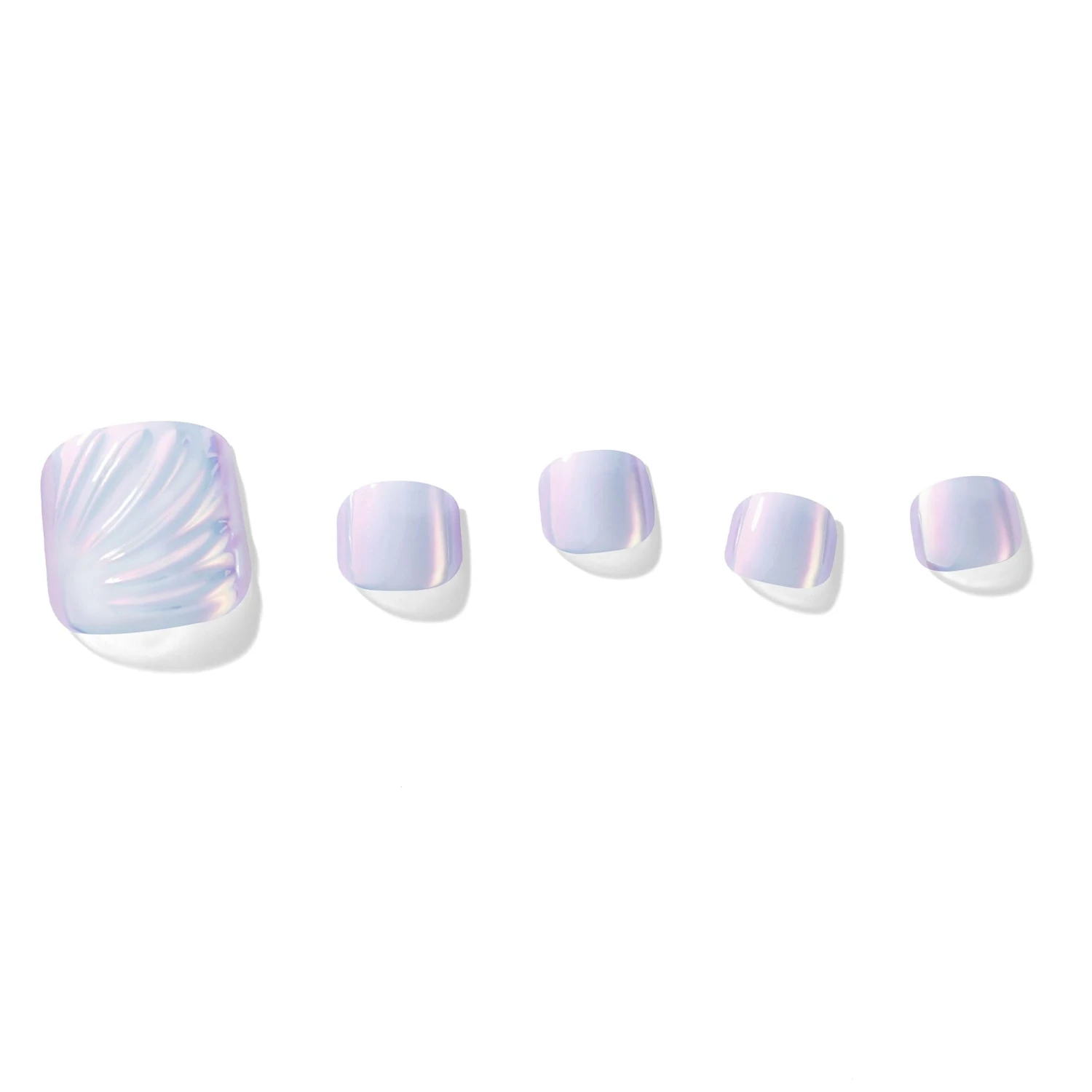 Press-on pedicure gel nails with easy application and comfortable wear. A summer Beach House essential, this blue and pink iridescent pedicure belongs on your toes.