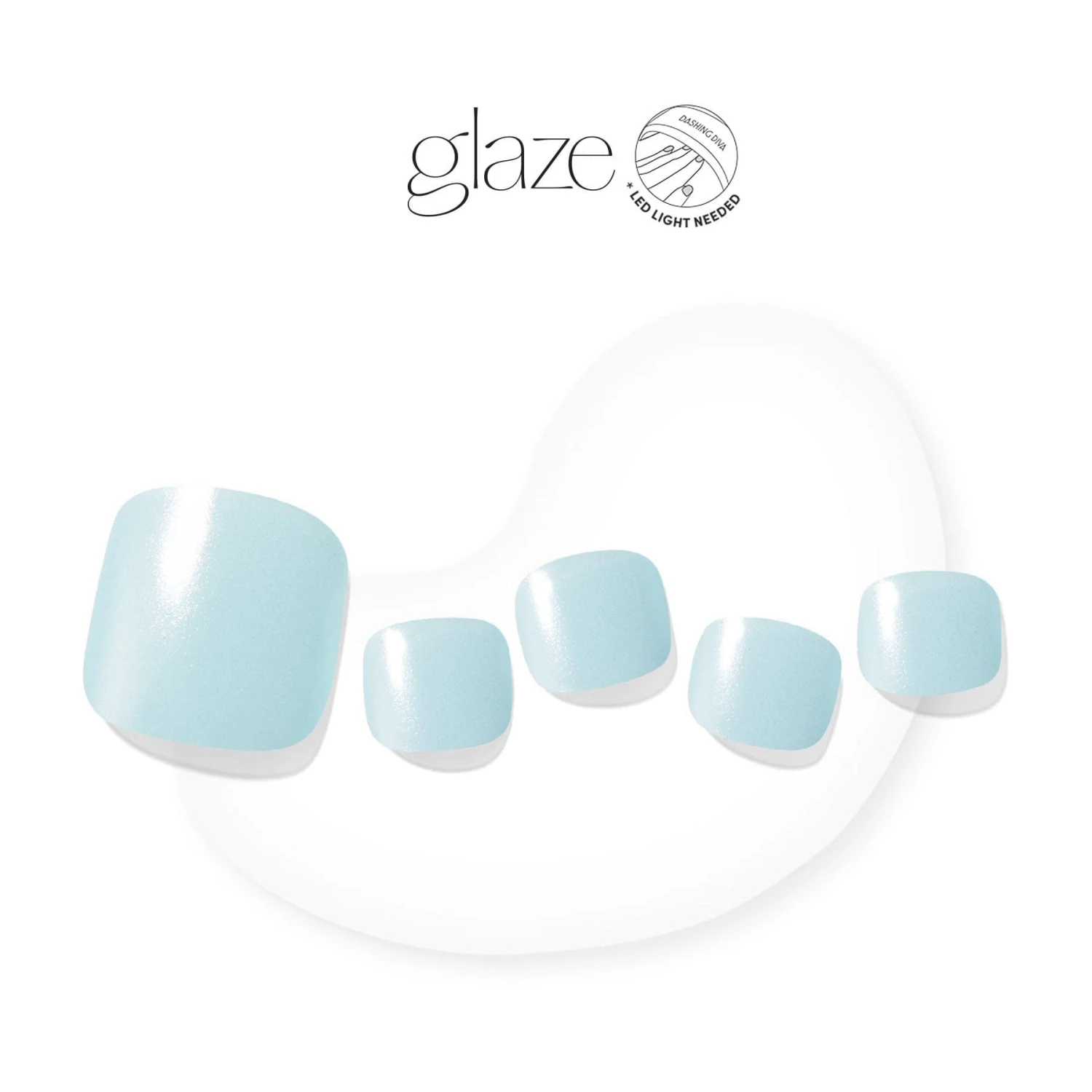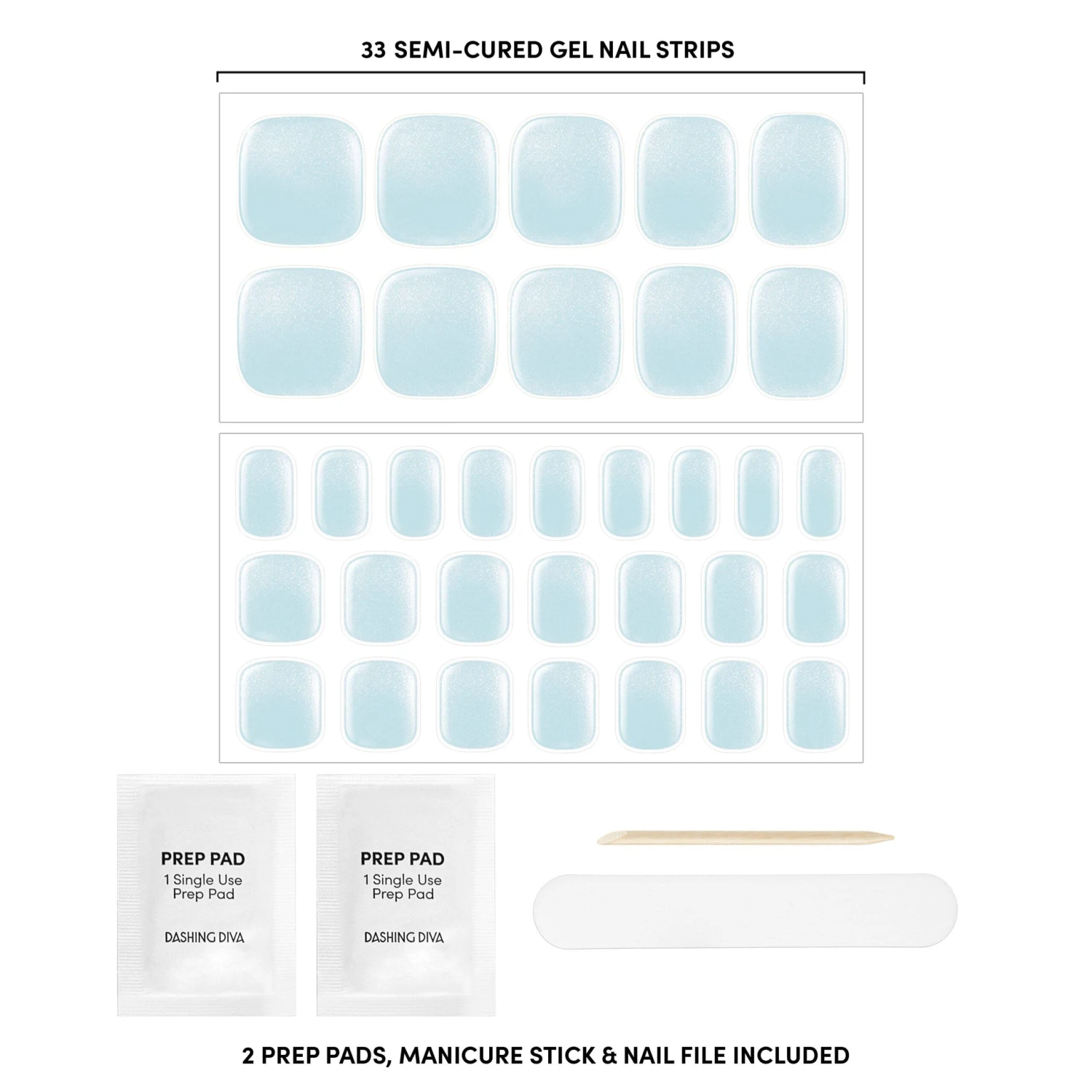 Semi-cured light blue gel pedicure strips featuring a shimmery chrome finish with mega volume & maximum shine.