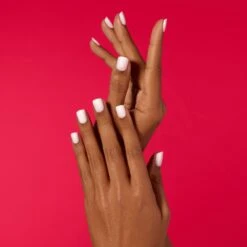 Short length, square shape, light pink press-on gel nails featuring a glossy, shimmery chrome finish.