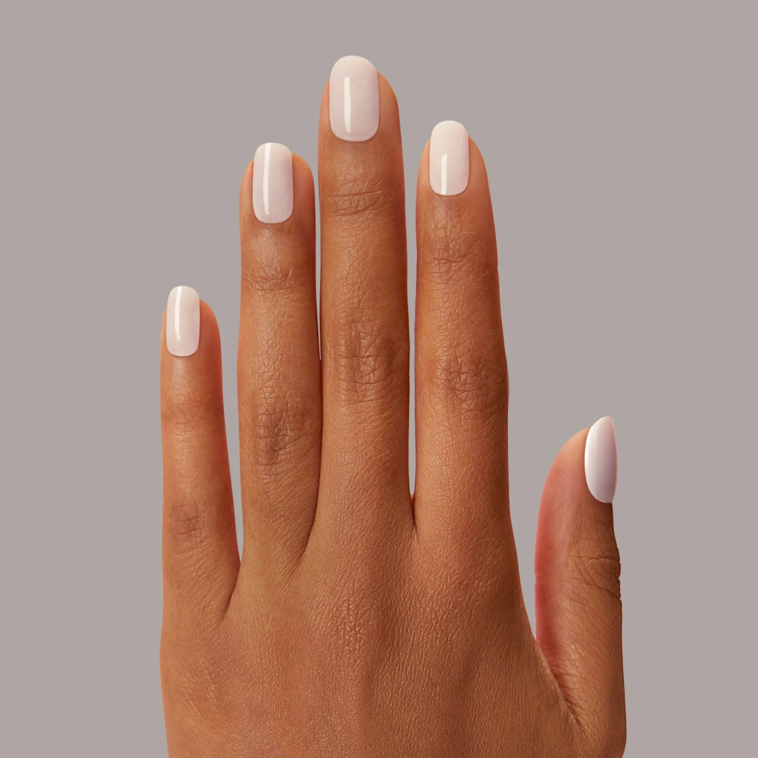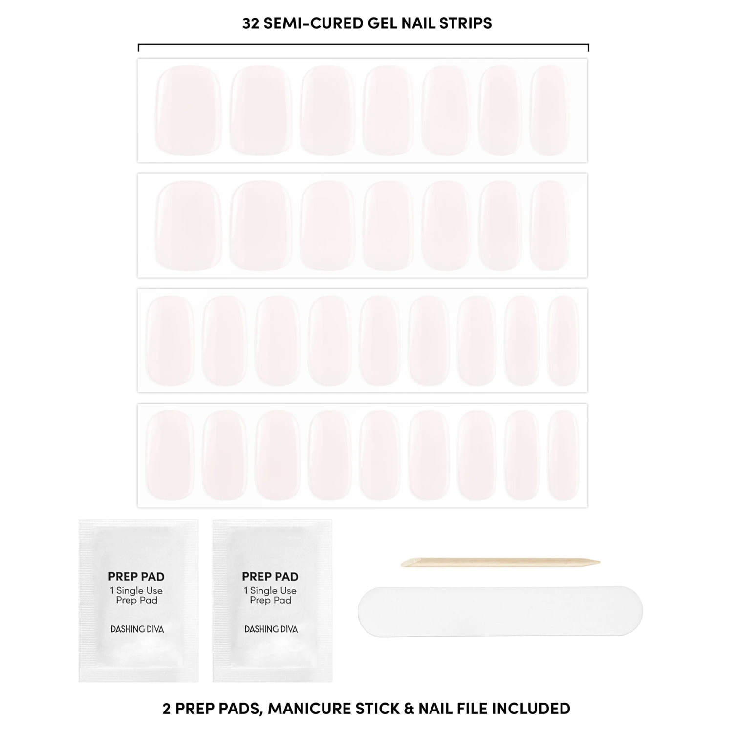 Semi-cured cool baby pink gel nail strips with mega volume & a sheer finish.