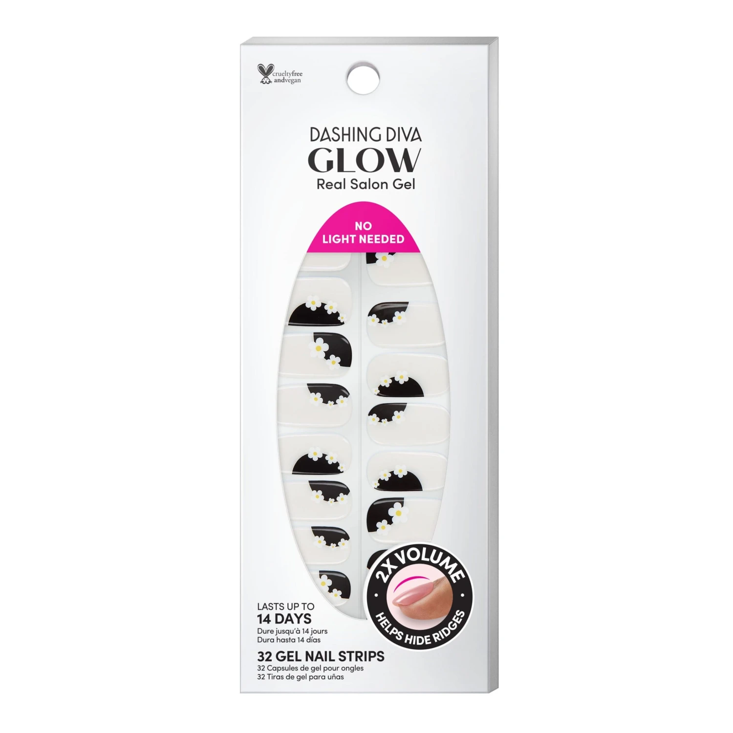 Nude and black gel nail strips featuring daisy accents with a double gel formula for a smooth finish!