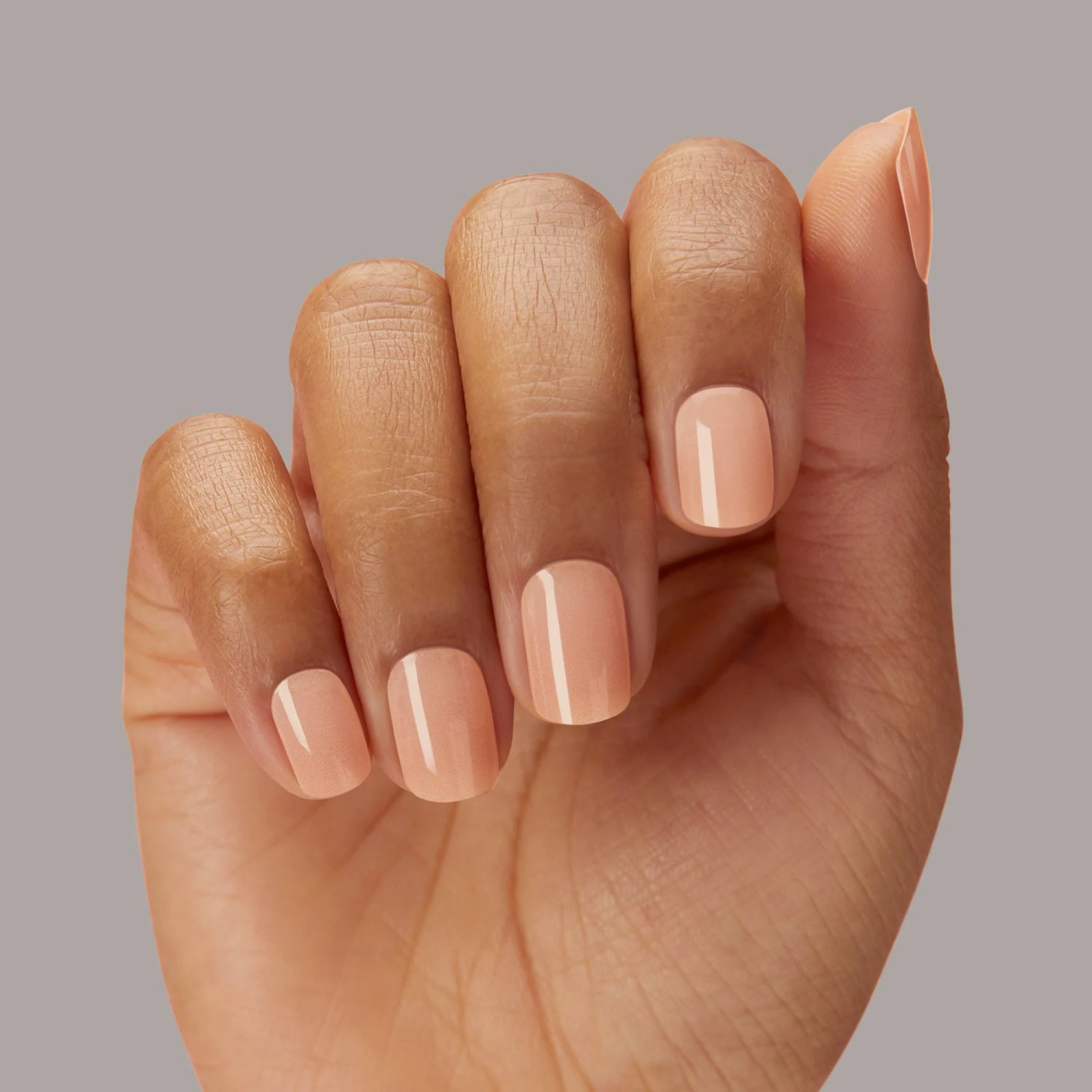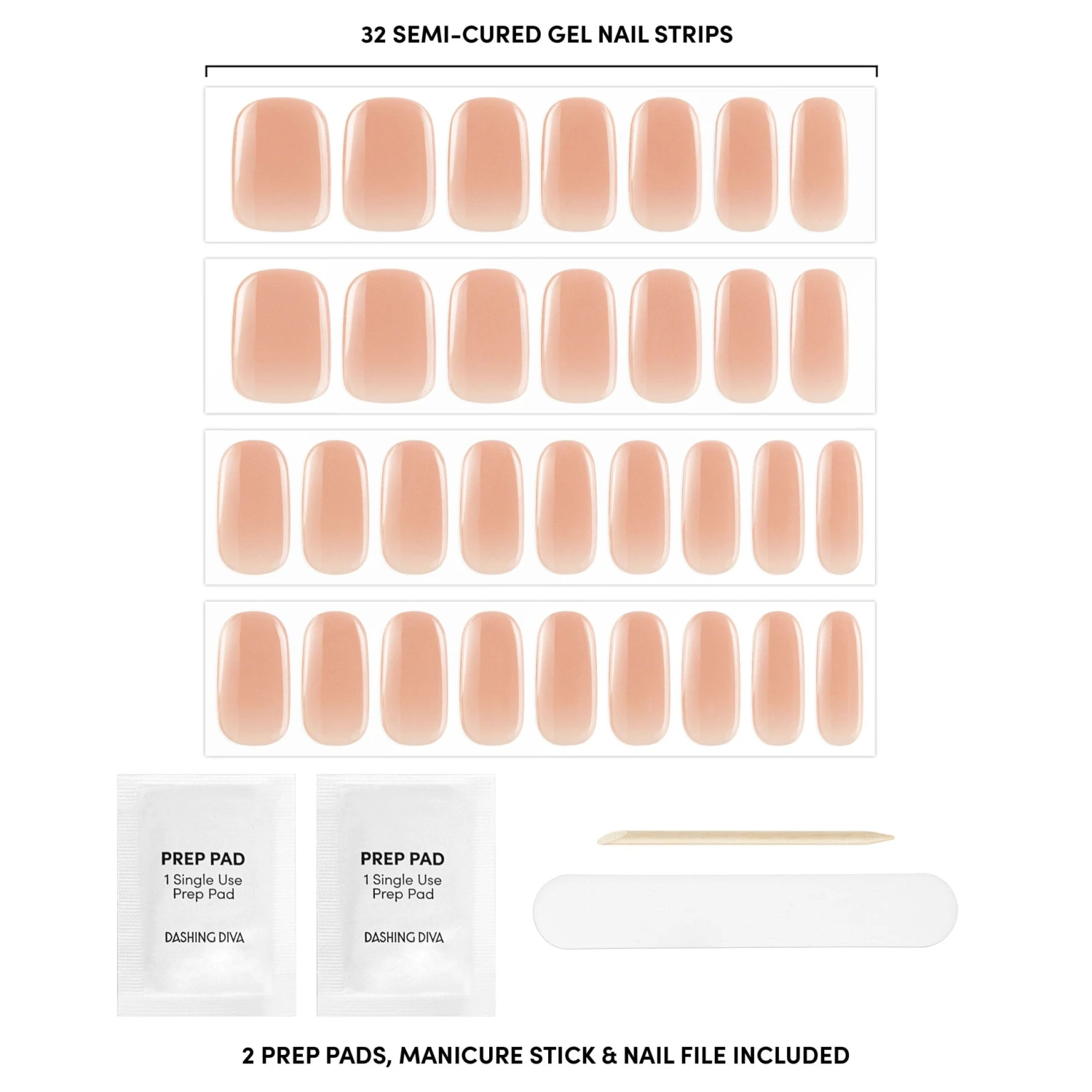 Semi-cured tan gel nail strips with mega volume & a sheer finish.