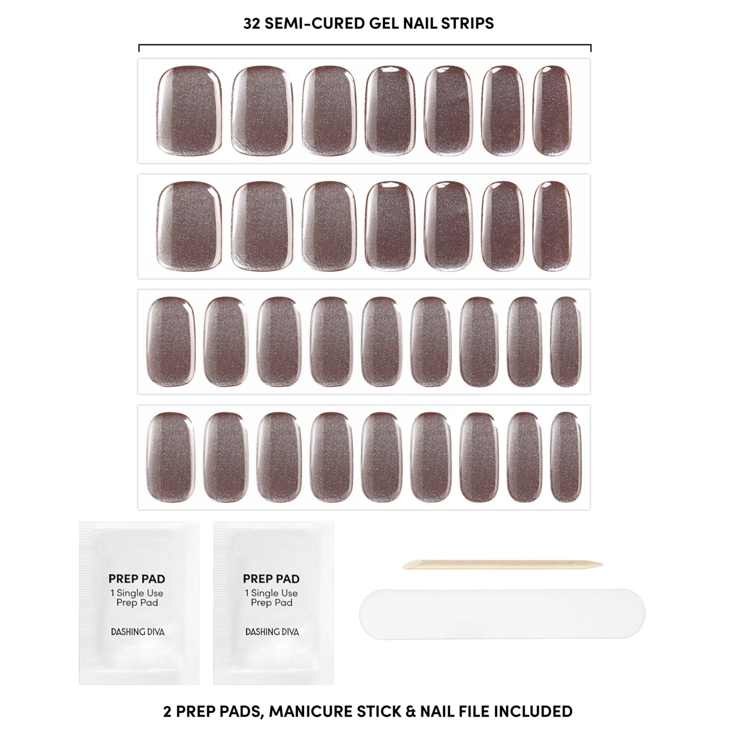 Semi-cured ultra dark brown gel nail strips with mega volume & a shimmery chrome finish.