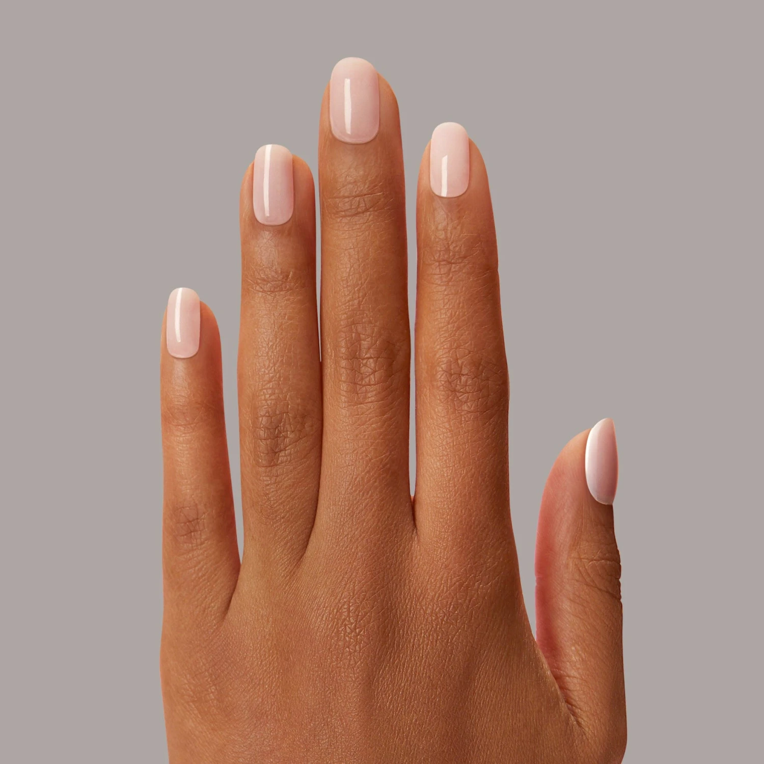 Semi-cured, cool, dusty pink gel nail strips with mega volume & a sheer finish.