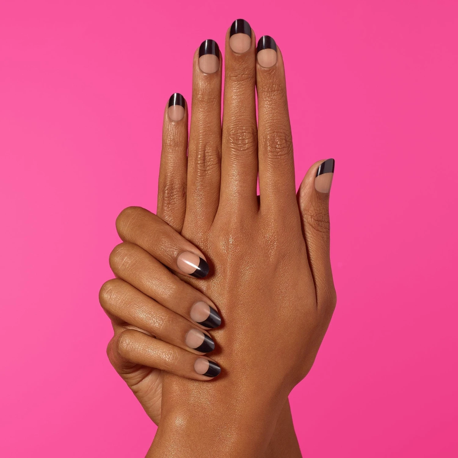 The nighttime version of your classic french manicure – Transparent gel strips featuring an intense black french tip with a glossy, high-shine finish.
