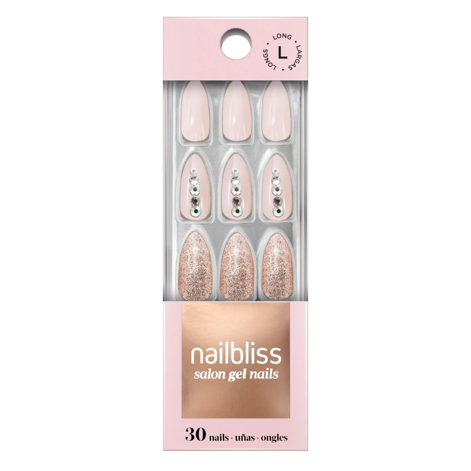 We gave the classic nude manicure an upgrade with added rhinestones and full on glitter.