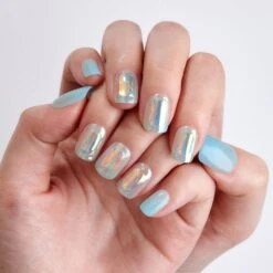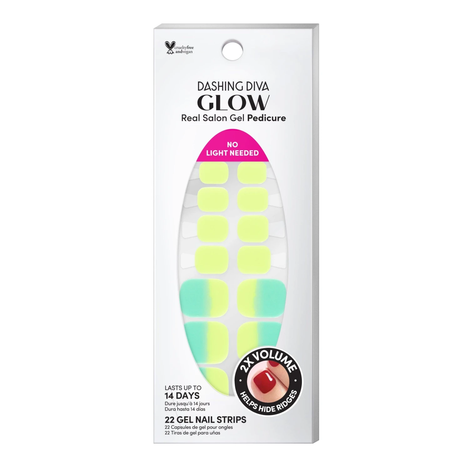 Light blue & neon yellow gel pedicure strips with a double gel formula for an ultra-smooth finish.