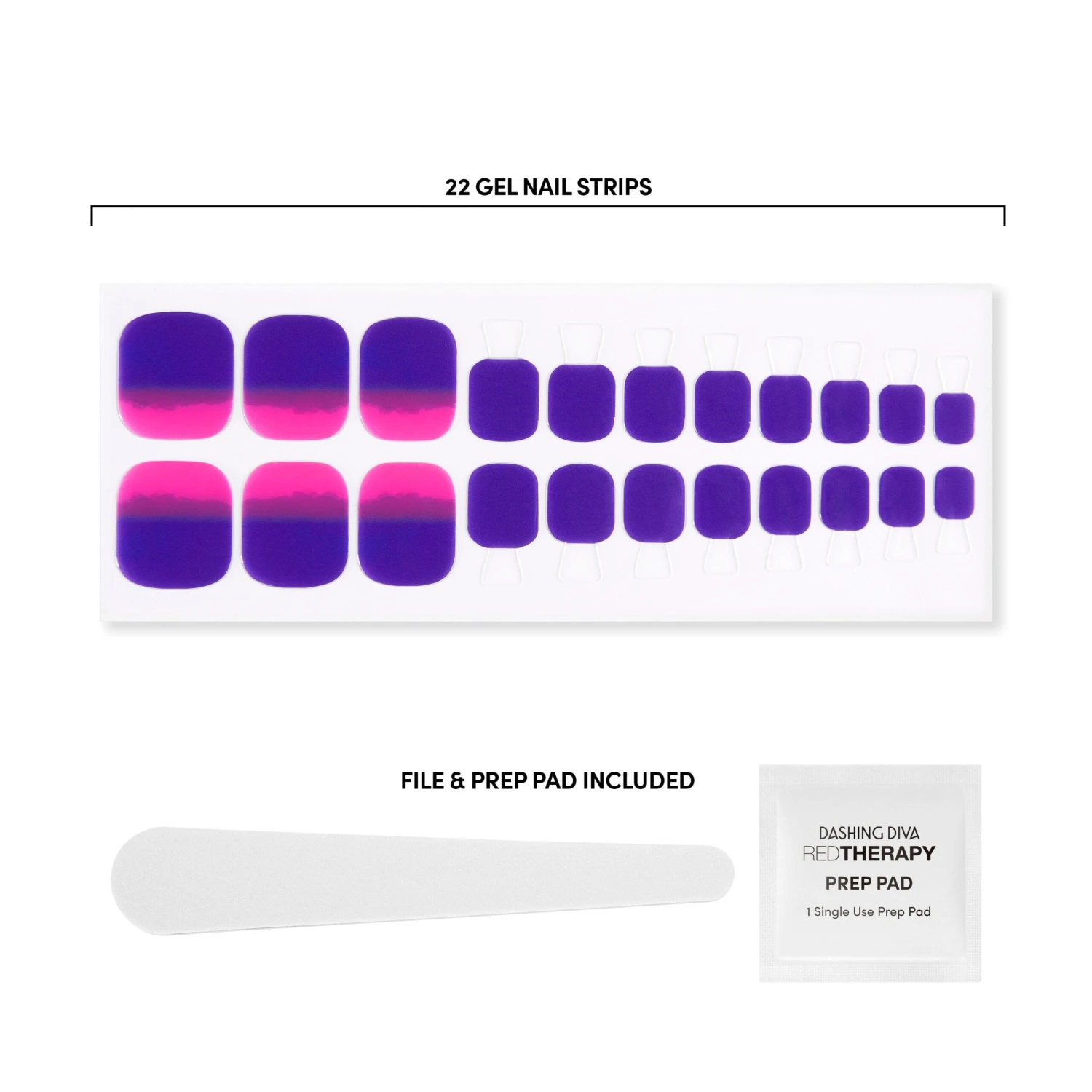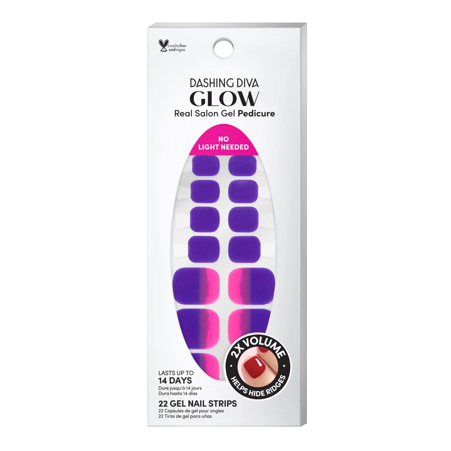 Hot pink & purple ombré gel pedicure strips with a double gel formula for an ultra-smooth finish.