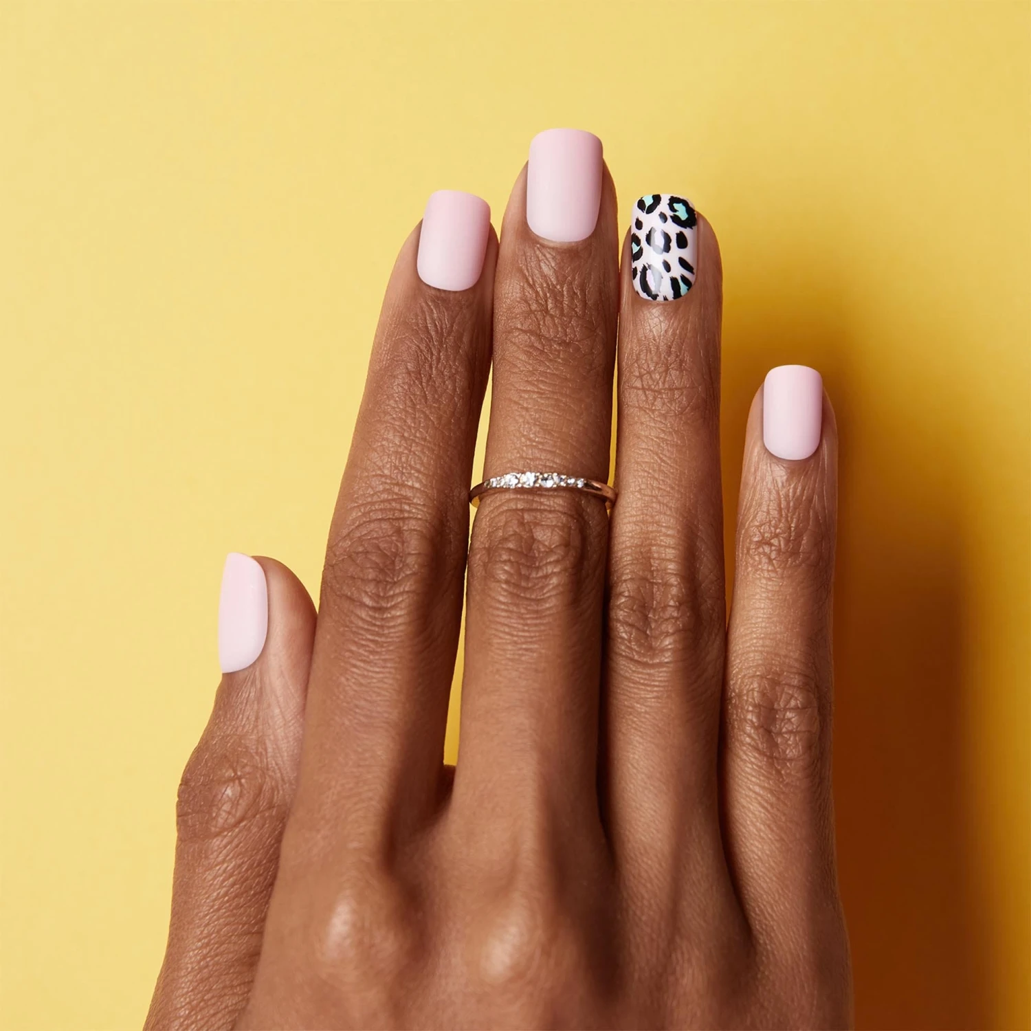 Short length, square shape, glossy & matte finish press-on gel nails. If you favor glam on the go, this animal print press-on manicure is your new Ride or Die.