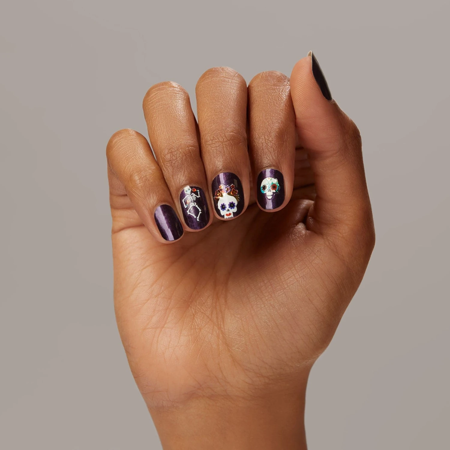 Premium nail art stickers featuring multicolor foil flowers, sugar skulls, and more!