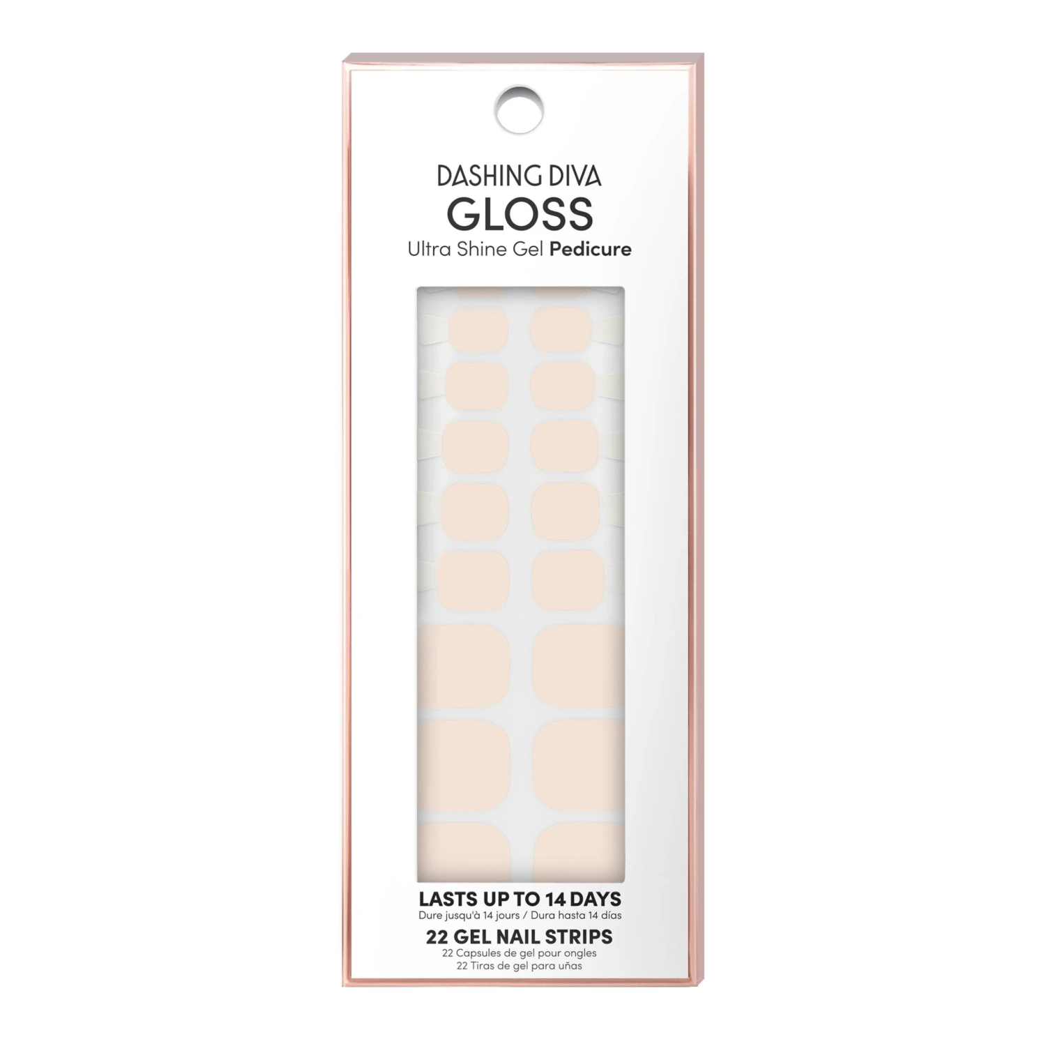 Soft apricot gel pedicure strips with a glossy, high-shine finish. A universally flattering, super sweet shade of nude!