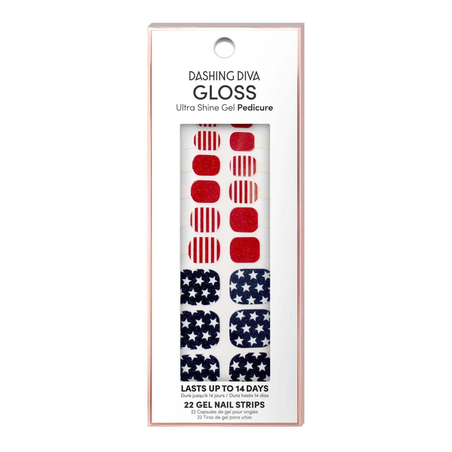 Red gel pedicure strips featuring star & stripe accents with a glossy, high-shine finish. Celebrate our Victorious Veterans by honoring them with your glamour!