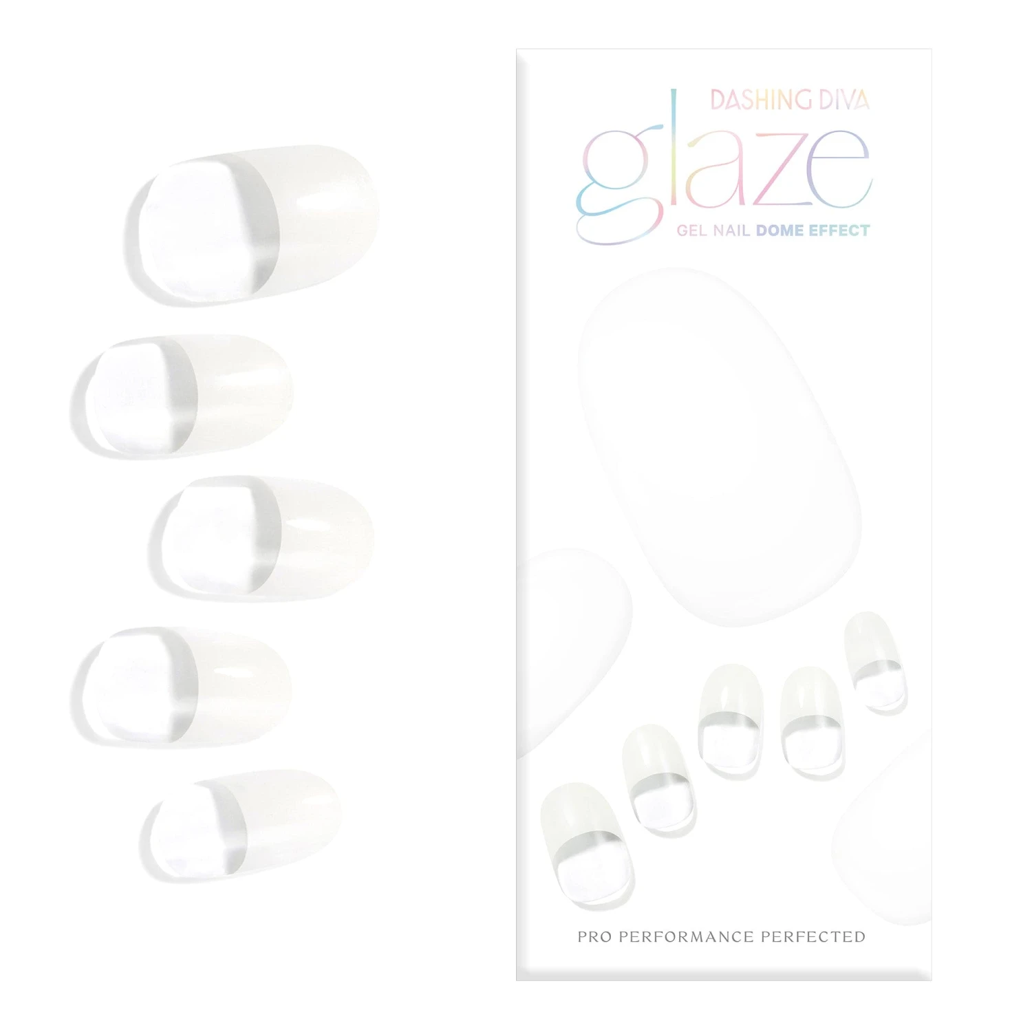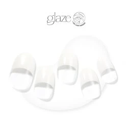 Semi-cured clear gel nail strips featuring pure white French tips with mega volume and maximum shine.